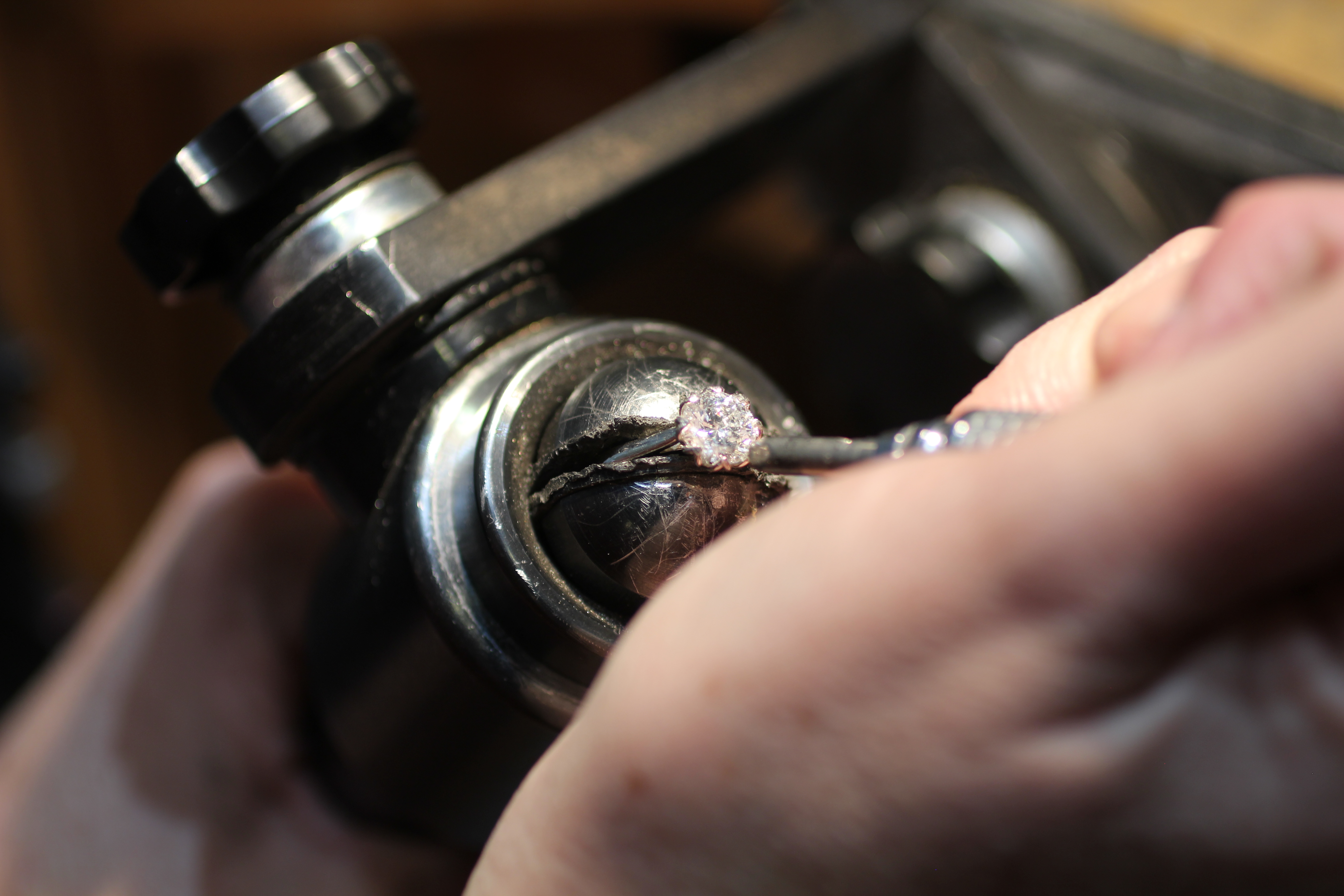 After this comes choosing a mount and resetting diamonds, which we do by hand: