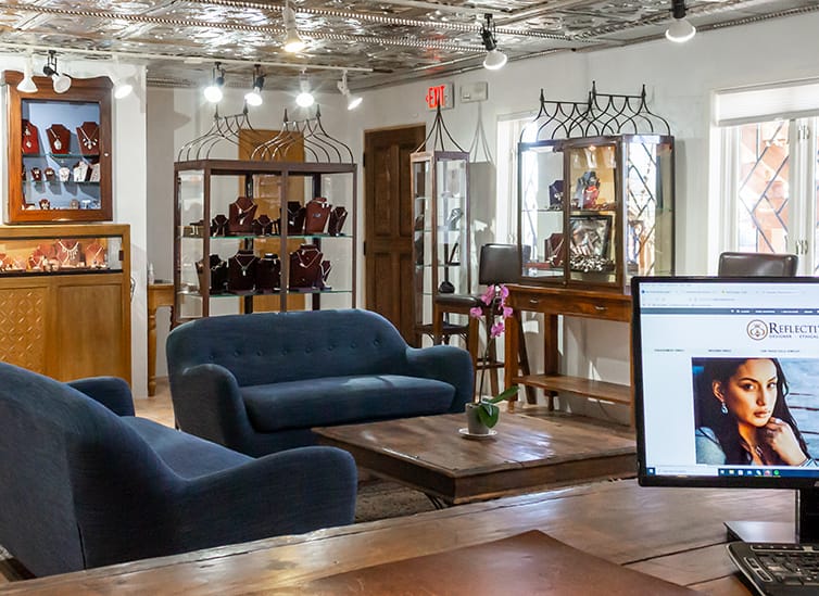 Call us at 888-733-5238, email info@reflectivejewelry.com, or stop by 912 Baca Street in Santa Fe during our business hours.